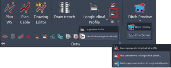 Command prompts for "Select objects:". Select whole drawn longitudinal profile