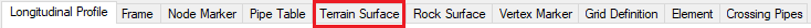 Here you set the appearance of the terrain surface line in the profile part of the longitudinal profile drawing. This includes layer name in the drawing, color, and line type.