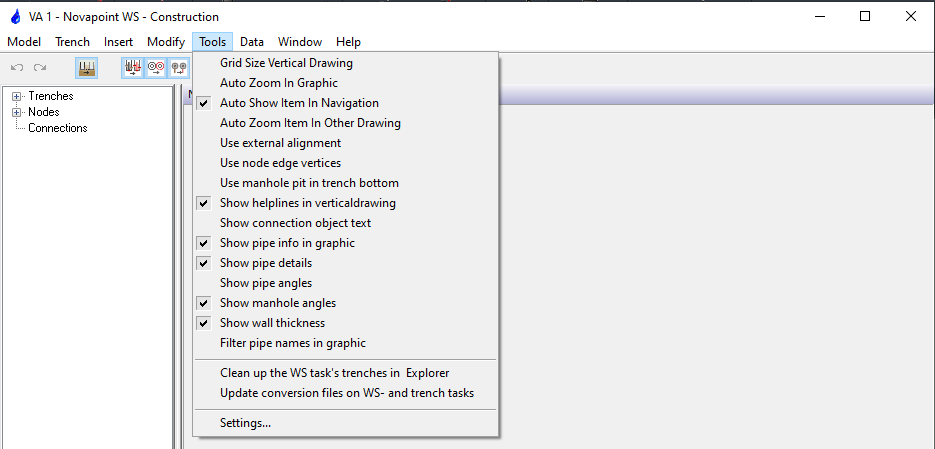 Menu Novapoint WS Construction > Tools > Settings…