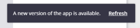 To load the new version to your browser, click the refresh link when the version update message is displayed: