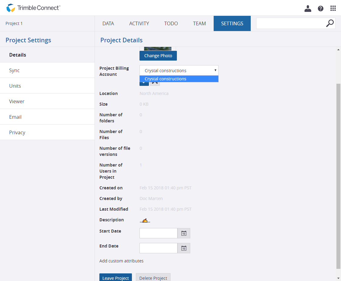 Once the purchase process is completed. Please log in to Trimble Connect app and the navigate to Settings page and the Project Details tab. Click on the Project Billing account field and choose the business license to move the project under your newly acquired business license.